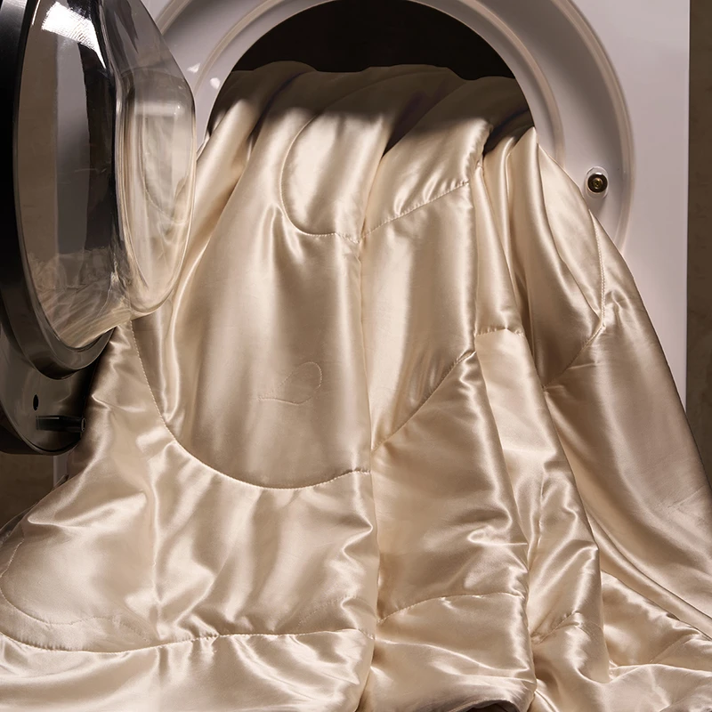 • Machine Washable: Unlike traditional silk quilts, our "Washable Silk" tech ensures the filling stays intact even after a gentle machine cycle.