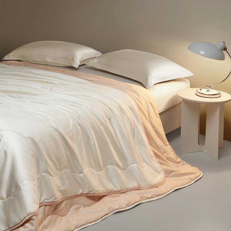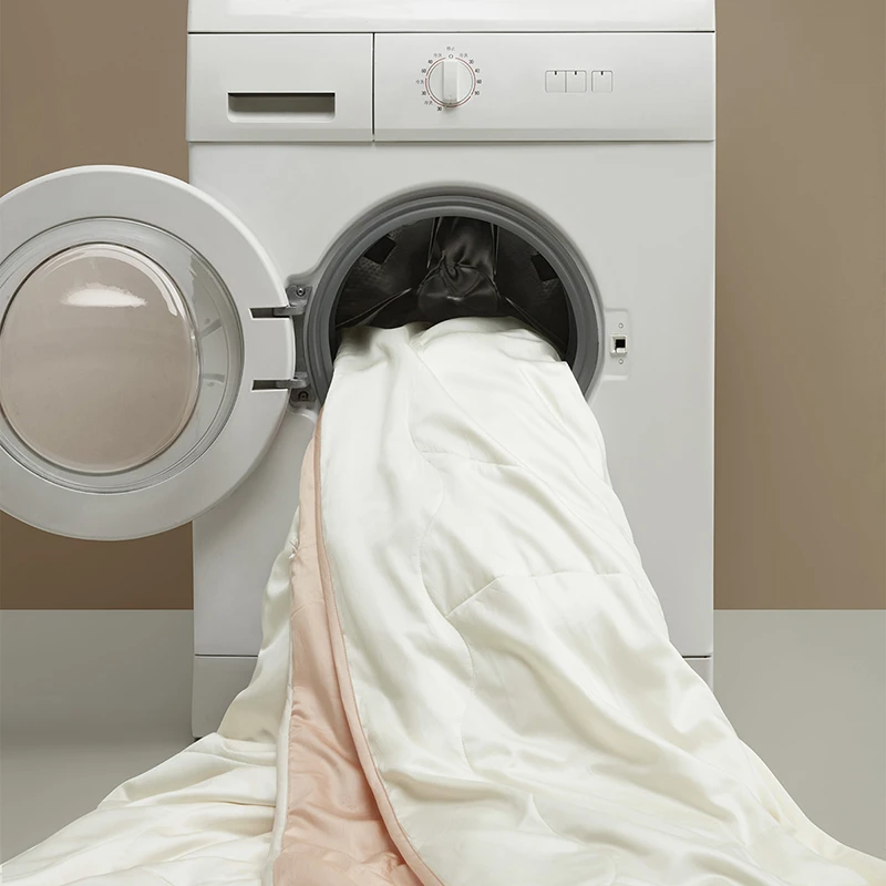 • التهوية: يُنصح بتهوية اللحاف في منطقة مظللة وجيدة التهوية كل موسم لتجديد حيوية الحرير.